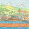 This Sweeping panorama was painted during a very sunny spring! The sparkling sea twinkles beneath the array of yachts and boats moored along the Teign and out at sea making the most of the fine weather. The Ness cliff is, as always, prominent with the The Ness pub and hotel nestling at the bottom of it. The colourful houses of Shaldon line the seafront, and behind we can see the beautiful rolling hills with their ploughed fields and spring crops beyond. The iconic black and white Teignmouth Shaldon ferry can be spotted making its way over the river, taking people back and forth to enjoy their days on the other side. You can see paddle boarders and some rowers heading out for a session just in front of the brightly coloured beach huts of Back Beach. Someone walks their dog across the Salty, and a scooter drives up the hill next to The Ness. Everyone is enjoying the glorious weather and all the delights Teignmouth and Shaldon have to offer on this magical bit of the English coast